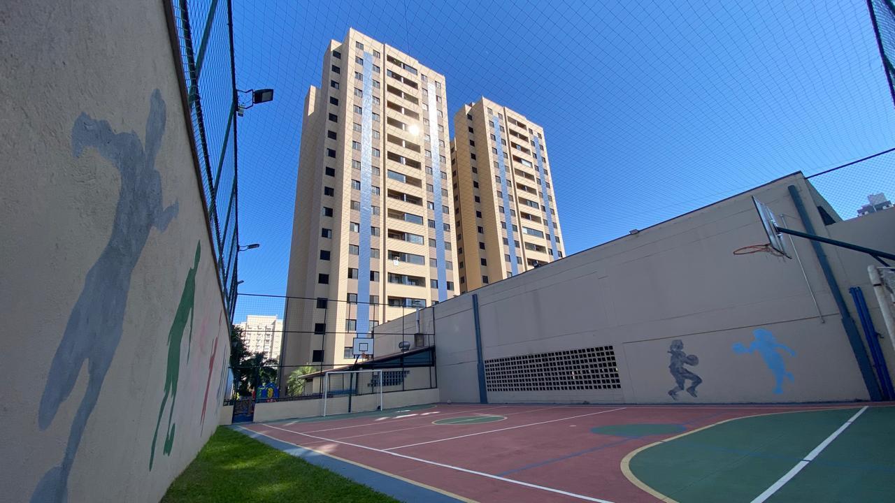 Prédio com academia, quadra poliesportiva, salão de festas, churrasqueira, salão de jogos, bicicletário, gerador e portaria 24h