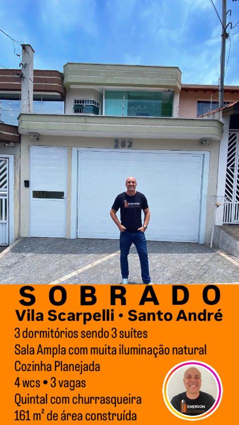 Sobrado Jardim Paraíso em Santo André/SP - 4 quartos 1 suíte 3 vagas